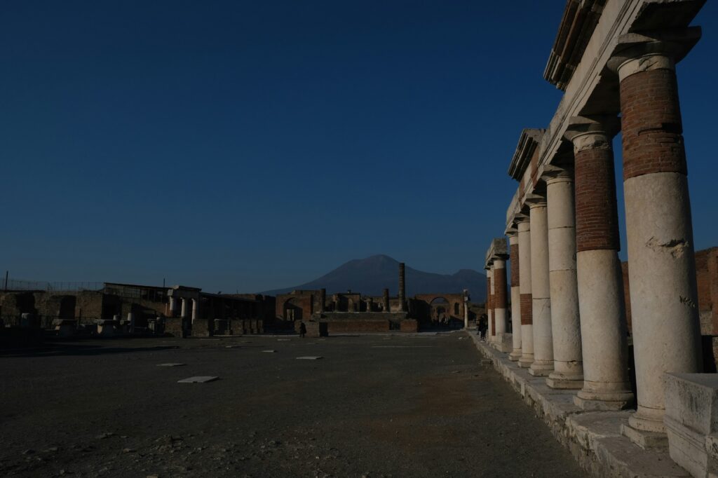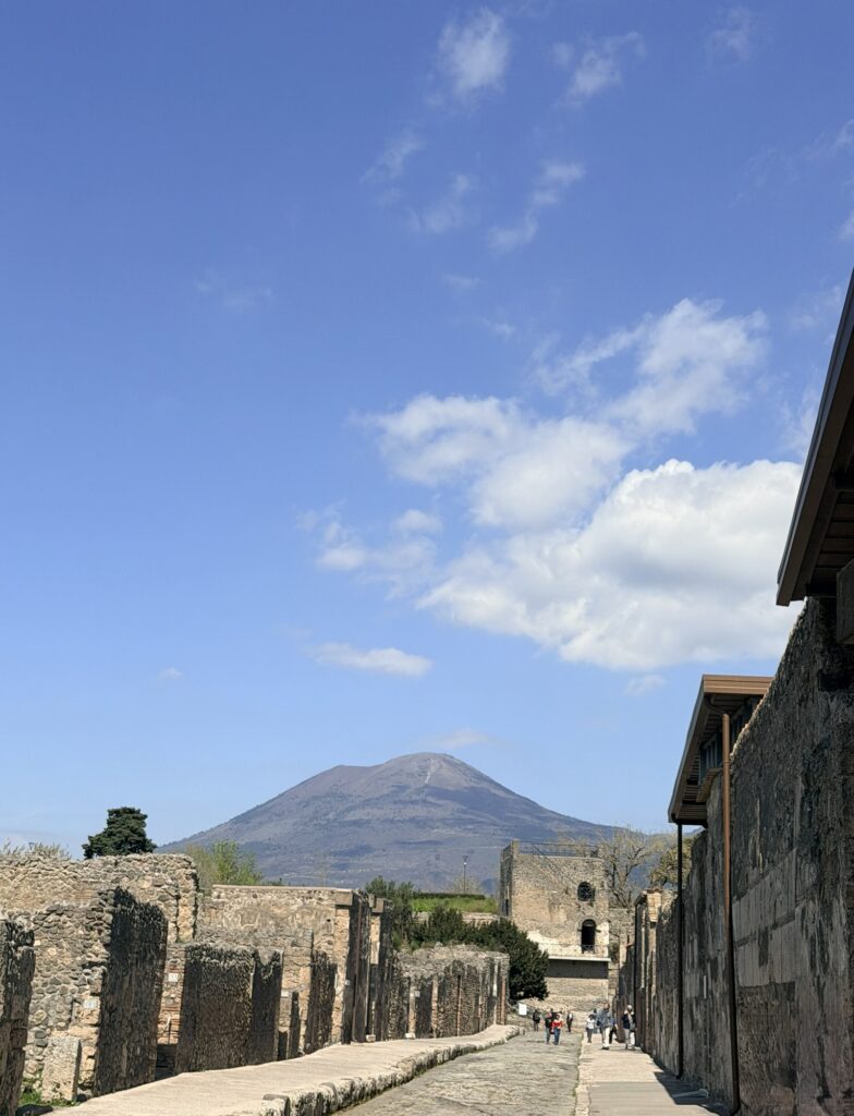 From the moment you step outside, you feel the shift. Modern life fades quickly. Mount Vesuvius rises in the background, quiet now, but impossible to ignore.